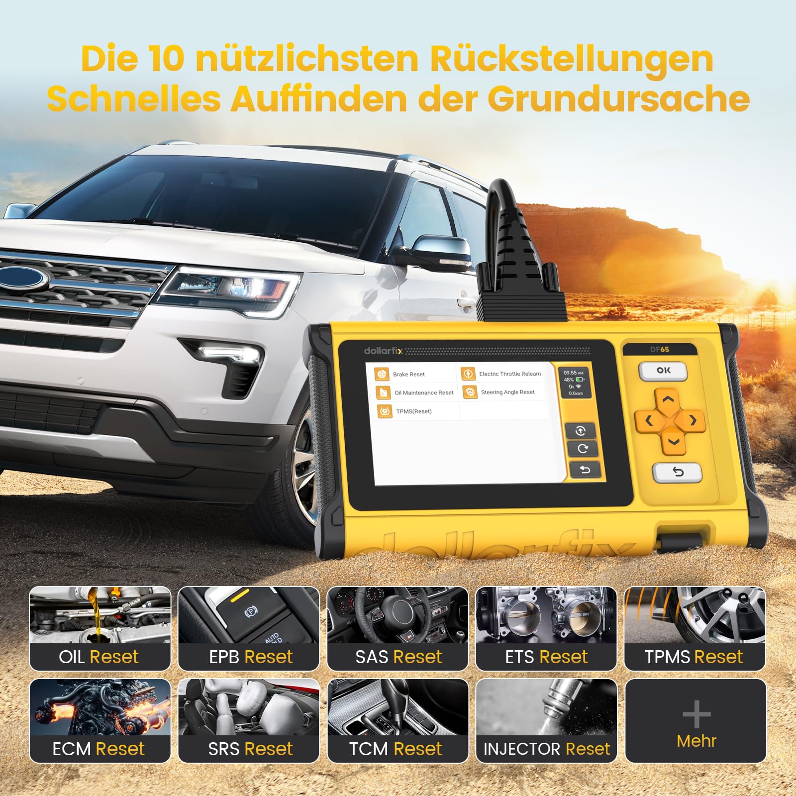 DollarFix Diagnosegerät Auto Mit 4 System Motor Getriebe ABS SRS, OBD2 Diagnosegerät für Alle Fahrzeuge mit 10 Reset-Funktionen Öl ABS EPB SAS, Aktive Tests, AutoVIN & Kostenlose Lebenslange Updates