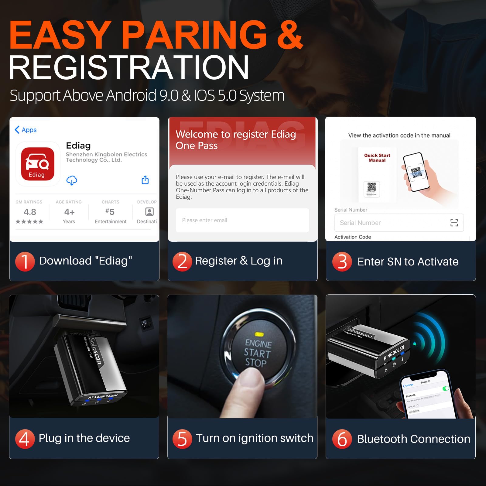 - 🎉【Bleiben Sie lebenslang auf dem neuesten Stand mit einem Klick】KINGBOLEN Soloscan OBD2 Bluetooth diagnosegerät bietet lebenslanges Update, Sie können immer alle Funktionen verwenden und die neuesten Funktionen ohne Kostenbeschreibungen aktualisieren, unterstützt ein Klick-Update online über wifi, bequem und stressfrei. Moverover, es kann Echtzeit-Monitor Full-Fahrzeug-Datenstrom, 4 in 1 Grafik-Vergleiche können Sie intuitiv anzeigen und vergleichen Sie die Daten der Fahrzeugsysteme.