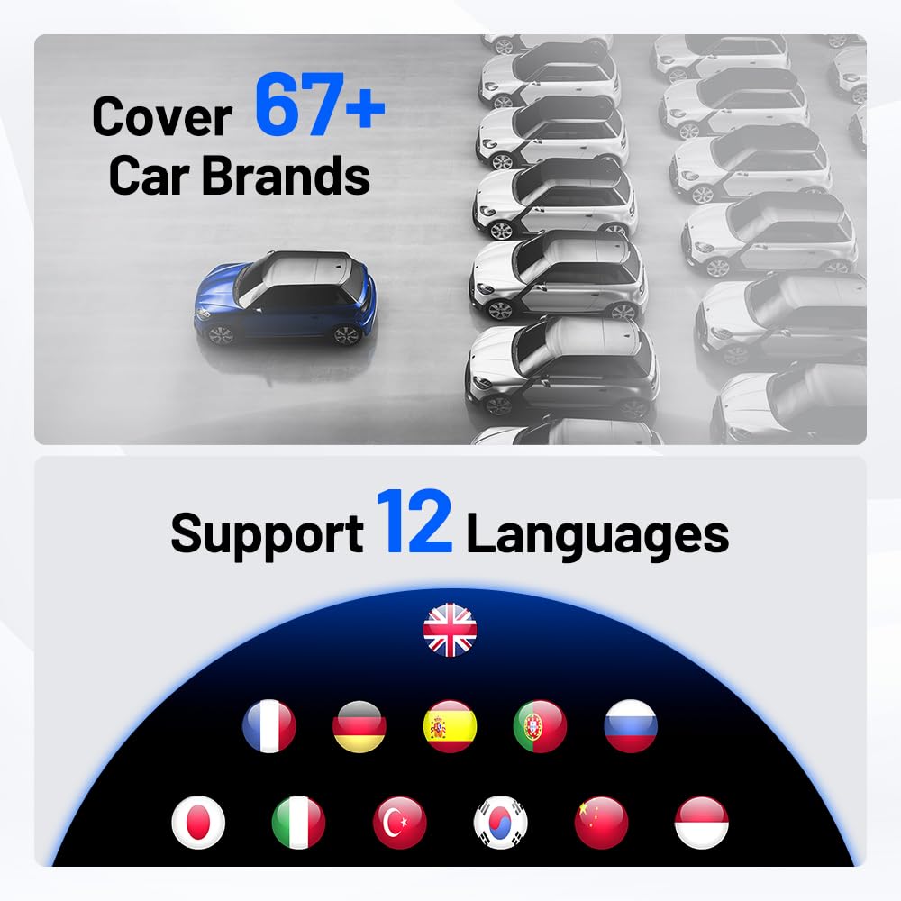 - 【GROSSE KOMPATIBILITÄT】 Dieser OBD2-Diagnosetester funktioniert an mehr als 10.000 Fahrzeugmodellen für Fahrzeugdiagnose, Reparatur und Wartung. Es unterstützt 12 Sprachen: Englisch, Französisch, Deutsch, Spanisch, Portugiesisch, Russisch, Japanisch, Italienisch, Chinesisch (vereinfacht/traditionell), Koreanisch, Polnisch, Türkisch. Wenn Sie Probleme bei der Verwendung haben, können Sie sich gerne an uns wenden.